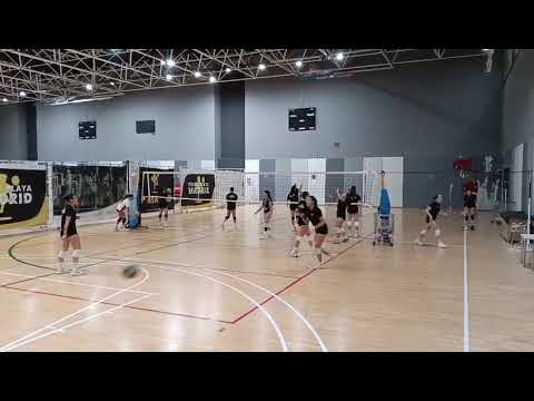 Esta es una de las variantes, luego otro día trabajamos colocación hacia dos en la estación D con defensa en z6 o z1 con ataque desde z4. En las estaciones B y C saque tenso corto pasando por el elástico, y en la estación A la receptora comienza sentada, tumbada, de rodillas, etc. La semana siguiente trabajamos esta variante os dejo varios videos.